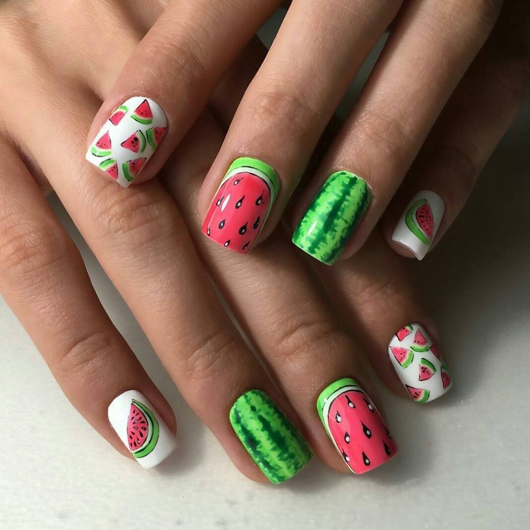 Лето уже наступило и нужно взяться за красивый летний маникюр.Хотите узнать какой летний дизайн будет супер модным.В сегоднейшей статье мы узнаем так какой же летний маникюр будет сиять на ваших ногтях ! 1 Маникюр "Арбузики" 2 Маникюр с цветочками 3 Маникюр с пальмой 4 Маникюр " Вкусняшка" 5 Маникюр "Мохито"