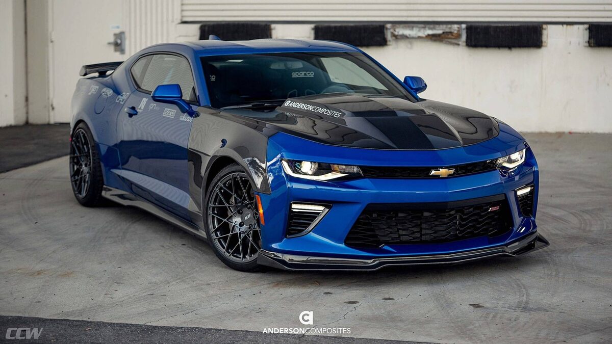 Помните BMW M3 E46 с широким корпусом, показанный в прошлом месяце? Так вот, похоже, у него появился новый брат, но не такой популярный, как двухдверный баварец. Им стал Chevrolet Camaro SS, который представил тюнер Anderson Composites. Благодаря материалам из углеродного волокна, кузов SS стал намного легче, и обработка началась от капота до самого заднего крыла. А в сочетании с синим цветом и углеродного волокна - издание получило свой уникальный шарм. Также Camaro SS получил набор 19-дюймовых дисков CCW Concave CVM10, а задние на два дюйма шире с обёртыванием в шины Continental ExtremeDW. Салон не получил полное обновление, но обзавёлся гоночными ремнями и сиденьями Sparco Pro 2000. Технические характеристики раскрыты не все, но известно, что передние колёса имеют 15-дюймовые шестипоршневые роторы Wilwood Aerolight, а задние получили четыре поршня. Под капотом была улучшена система впуска, которая получила технологии: SCT Livewire Tuner, Hurst Shift Kit и SLP Performance. К сож