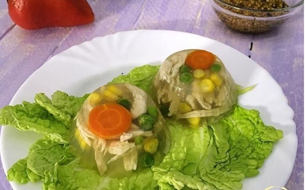 Готовим мы его конечно же из куриного филе (мы же ппшки 😂) на агар-агаре. Количество ингредиентов указано на 10 порций для небольших кексов. Ингредиенты: 🔹куриное филе - 250 г🔹вода - 750 г🔹морковь - 0,5 средней🔹горошек, кукуруза мороженные - по 20 г🔹лавровый лист 🍃🔹перец душистый горошком🔹перец чёрный горошком🔹перец молотый🔹соль🔹агар-агар - 7 г. Приготовление: Варим куриный бульон. Добавляем все пряности по вкусу и желанию. Отвариваем морковь 🥕 до готовности и режим кружочками. Куриное филе охлаждаем и разбираем на небольшие кусочки.Агар-агар замачиваем в горячем бульоне около 15 минут. Подогреваем агар-агар постоянно помешивая 15 минут, пока бульон не посветлеет.Раскладываем по силиконовым формочкам овощи и куриное филе и заливаем горячим бульоном. Оставляем охладиться и убираем в холодильник до подачи на стол. Советы:• важно именно хорошо разогреть бульон с агаром и проварить, что бы не было запаха и привкуса• куриное филе лучше разбирать руками - так сохраниться струк
