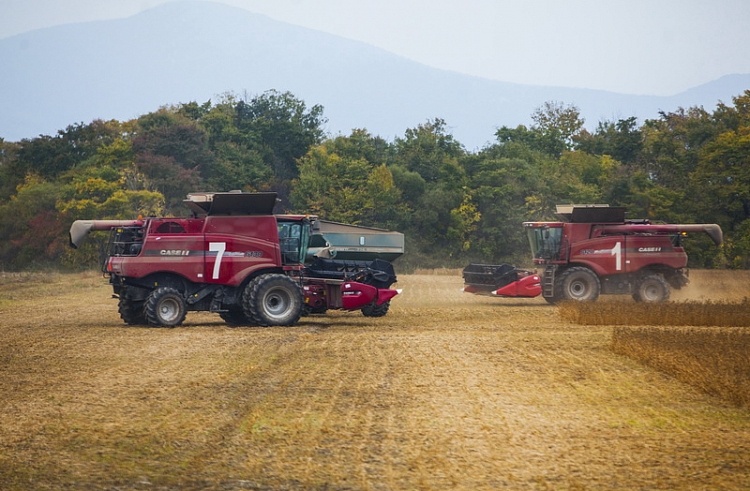 Сельхозпроизводители Приморского края убирают с полей пшеницу, ячмень, овес и овощи. На полях работают более 700 комбайнов. Как сообщили в краевом департаменте сельского хозяйства и продовольствия, на сегодняшний день убрано почти 960 гектаров ранних зерновых. «Намолочено 300 тонн пшеницы, более 1 800 тонн ячменя и 180 тонн овса», – отметили в ведомстве. Также убрано почти 295 гектаров озимых культур – 70% от плана. «С полей собрано 930 тонн озимых культур. Урожайность составила 32 центнера с гектара, при средней – 25», – добавили специалисты. Крестьяне также собрали более 2 700 тонн овощей и начали заготовку кормов. По словам вице-губернатора Валентина Дубинина, приморским аграриям в этом году предстоит убрать почти 38,5 тысяч гектаров пшеницы, овса и ячменя. Напомним, глава региона Андрей Тарасенко не раз подчеркивал, одна из важнейших задач – насытить Приморье местной продукцией и выйти на экспорт в страны АТР. Вопрос развития сельского хозяйства глава края обсудил с Президентом Рос