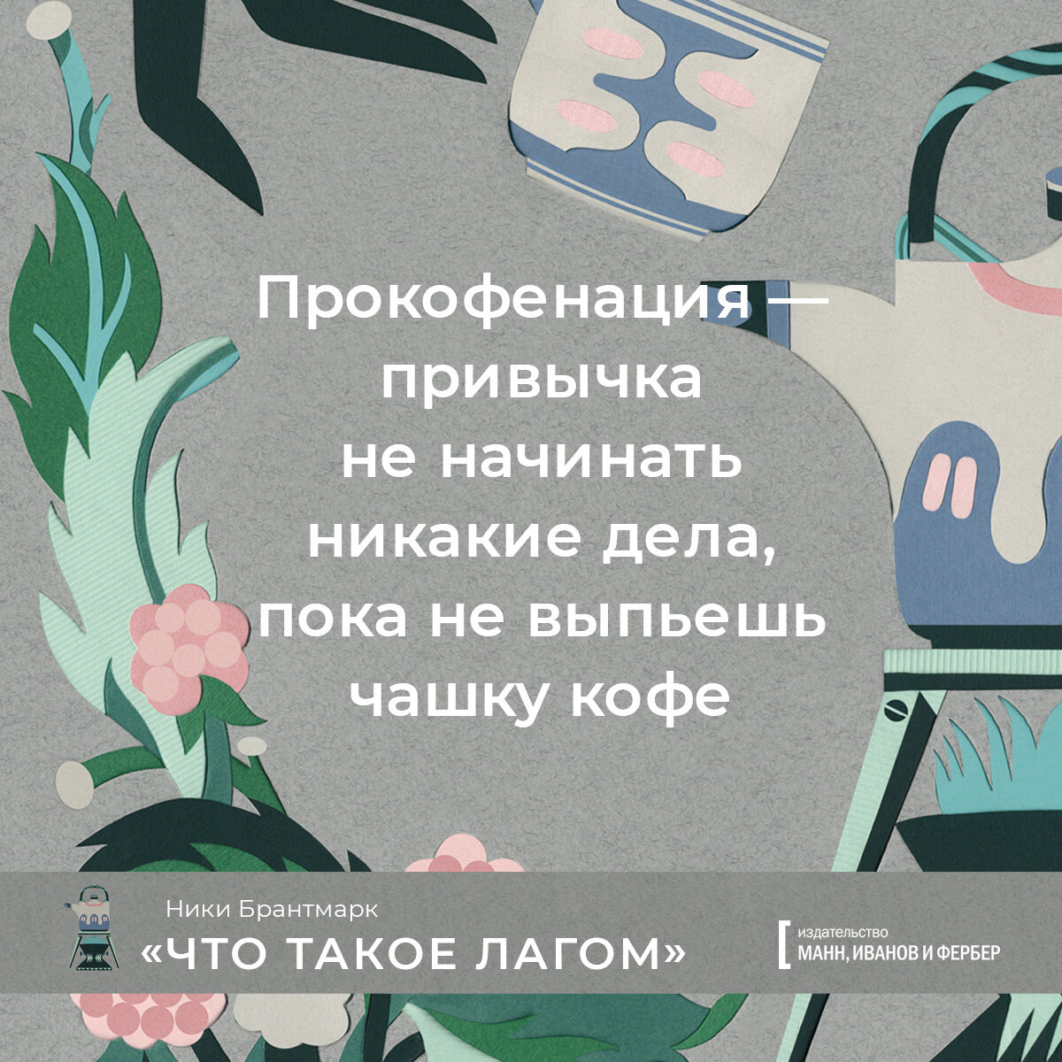 Надеемся, у вас были отличные выходные! Желаем продуктивной, крышесносной, идеальной недели. Сделали подборку открыток из книги «Что такое лагом». Передайте эстафету вдохновения дальше — поделитесь с другом какой-нибудь карточкой. Ну и не забудьте на досуге прочитать эту классную книжку про Лагом. В основе лагом лежит идея о том, что для достижения гармонии с окружающим миром не нужно радикально менять жизнь и в чем-то себя ущемлять. В этой восхитительной книге Ники Брантмарк — создательницы и ведущей известного блога My Scandinavian Home, удостоенного множества наград, — объясняется философия лагом и принципы ее использования в повседневной жизни. Вдохновляющие и интересные идеи помогут достичь баланса и благополучия и жить в гармонии с окружающей средой. В книге три части. Из первой вы узнаете, как избавиться от хлама, практиковать осознанное потребление и освоить непринужденный скандинавский стиль в дизайне интерьеров. Вторая часть — об искусстве наслаждаться малым. И, нако