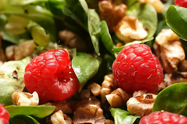 2 стакана орехов, 1 стакан сахарной пудры, свежая малина, растительное масло. Грецкие орехи очистить от скорлупы, с ядер снять кожу(для этого замочить на 10-15 минут в горячей воде). Очищенные орехи ошпарить кипятком, откинуть на дуршлаг, пересыпать сахарной пудрой, поджарить во фритюре, вновь откинуть на дуршлаг, охладить, смешать с малиной. При желании в блюдо можно добавить 2-3 столовых ложки сиропа, сока. Приятного аппетита Понравился рецепт? Лайк+подписка