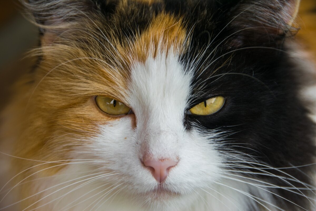 Вот еще одно фото трехцветной кошки с уникальным взглядом.