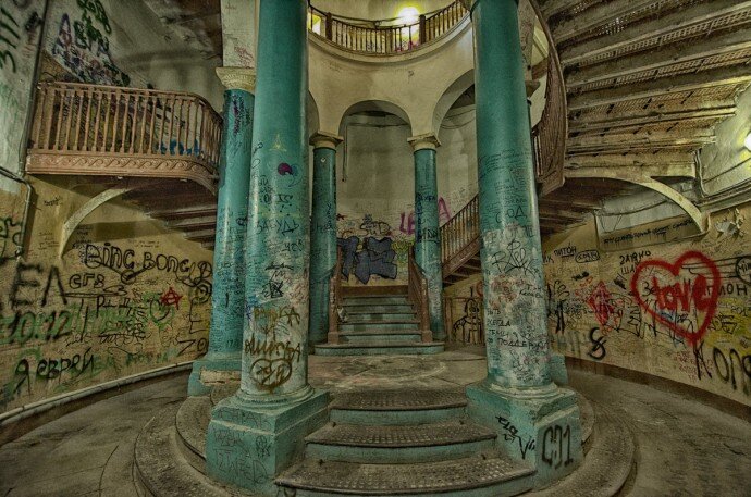 Подъем в портал. Правда или выдумки? По среди Санкт-Петербурга стоит ничем не примечательный дом разве что имеет он угловую форму и двойной адрес Гороховая улица, 57 — набережная Фонтанки, 81. Но стоит железной двери одного из подъездов распахнуться, как перед посетителями предстает помещение с шестью колоннами, поддерживающими верхнюю площадку, винтовой лестницей и куполами. Эта лестница называется ротондой, лестница дьявола как называют ее в народе, и является аномальной зоной. По одной из легенд считается, что если подниматься в верх по левой стороне лестницы то дойдя до конца можно увидеть невидимый проход который уведет в другое измерение. На самом же деле лестница заканчивается тупиком, объясняя это тем что при строительстве лестницы рабочие увидели открывшийся вдруг перед ними портал, явление до того их напугало, что решено было закончить лестницу стеной. А местные жители любят рассказывать подтверждающий случай про молодого человека который провел 15 минут в портале, а по