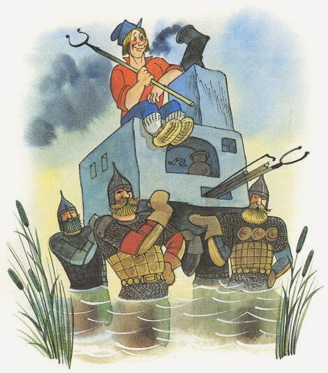 Услышал на радио "Град Петров" и потом нашёл в интернете и прочитал доклад Бориса Петровича Вышеславцева "Русский национальный характер", прочитанный в Риме в 1923 году. Доклад о том, что в русских сказках весь ход русской революции был изложен за века до того, как она случилась. Увидел два текста в интернете, разные по полноте, поэтому оставлю ссылку http://www.kph.npu.edu.ua/!e-book/clasik/data/vopros/11.html У меня тут, конечно, будет очень краткий пересказ, потому что нельзя же весь доклад просто к себе переписать, а он такого свойства, что весь интересный. Чтобы всё было задаром Сначала Вышеславцев разбирает сказки, в которых излагается как можно лежать на печи, ничего не делать, а всё само собой происходит по щучьему велению. Кульминацией этой части доклада, со сказочными мечтами о земном счастье, является история Ильи Муромца, который однажды обиделся, что его не пригласил на пир князь Владимир. Натянул он тугой лук, вложил стрелочку каленую и начал стрелять... В кого бы вы д