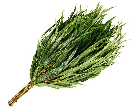 Для того чтобы использовать такой веник для лечения простуд в бане, после его замачивания и перед тем, как начать массаж тела, нужно листья прижать к лицу и вдыхать его аромат носом и ртом. Часто добавляют в букет из эвкалипта полынь, шалфей, ромашку и мяту, чтобы усилить действие, но сделать мягче терпкий запах его листьев. Нужно сказать, что не каждый человек способен выдержать аромат такого количества листьев этого растения, поэтому иногда берут всего одну — три ветки эвкалипта и помещают их, например, в дубовый или березовый «букет». Выбирая сухой эвкалиптовый веник, нужно обратить внимание на его цвет – он должен быть не блекло-серым, а ярко-зеленым. Этот фактор говорит о том, что его правильно заготовил