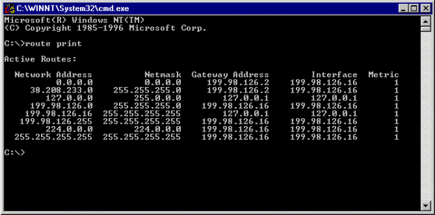 Вывод об использовании команды route в Windows