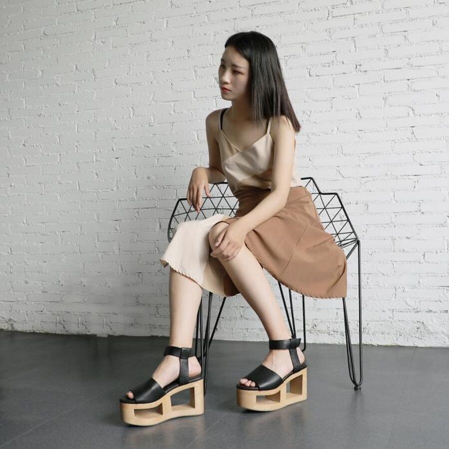 Китайский дизайнер Yvon Yang предложил носить летом обувь... на деревянных каблуках и платфомах. Минимализм, эко-материалы и высокие подошвы в этом году на пике популярности, а обувь с деревянной основой стала главным трендом этого модного бренда. Дизайнер Yvon Yang окончил Китайский Гонконгский университет в 2008 году, и сейчас его бренд специализируется на создании экологичной обуви. Подошвы, выполненные из дерева, изготавливаются вручную, каждая имеет неповторимый узор древесных колец, которые хорошо видны на материале даже после многократных испытаний городской средой в виде сушек и деформаций. Так Yang соединил современные технологии и многовековые традиции — деревянные подошвы на Востоке издавна встречаются в форме сандалей гэта. Характерными чертами бренда являются затейливой формы каблуки в виде сферы, многогранника, трапеции и использование натуральной кожи. Любопытно, что текстура дерева оригинально повторяет форму каждой модели, подчеркивает динамику или ст