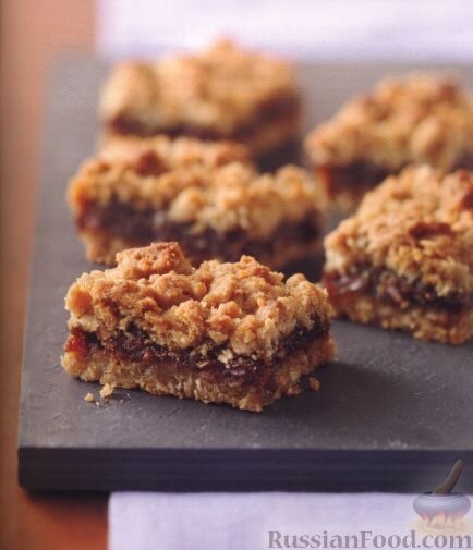 Песочное тесто с овсяными хлопьями в сочетании с финиками создает очень вкусный десерт. Продукты (на 36 порций) Для начинки: Финики без косточек (нарезанные) - 3 стакана (450 г) Вода - 1,5 стакана (300 мл) Сахарный песок - 0,25 стакана (50 г) Для песочной крошки: Сахар коричневый - 1 стакан (200 г) Масло сливочное размягченное - 200 г Мука - 1,75 стакана (230 г) Хлопья овсяные быстрого приготовления - 1,5 стакана (135 г) Разрыхлитель - 0,5 ч. л. Соль - 0,5 ч. л. _______________________ Как приготовить овсяные песочные пирожные с финиками: 1. В 2-литровой кастрюле приготовить начинку. Отправить туда нарезанные финики, сахарный песок и воду. Нагревать на минимальном огне 10 минут, постоянно помешивая, пока не загустеет. Остудить в течение 5 минут. 2. Разогреть духовку до 200°C. Дно и бока противня, размером 33х22 см, смазать сливочным маслом. 3. В большой миске смешать коричневый сахар и сливочное масло до однородной консистенции. Добавить муку, овсяные хлопья, разрыхлитель и соль.