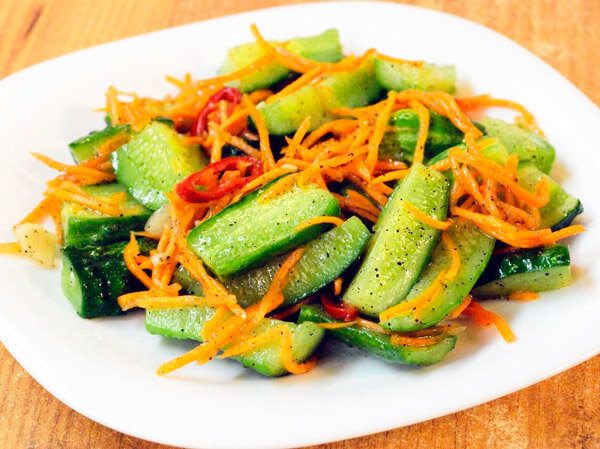 Лето радует не только солнечными днями и теплом, а и вкусными и полезными овощами. Салаты быстро приедаются, но из огурцов можно приготовить пикантное блюдо по-корейски, которое оценит вся семья. Для приготовления используются доступные и недорогие продукты: Из ингредиентов получится необычный летний салат: Для заготовки на зиму необходимо разложить салат по банкам, простерилизовать в кипящей воде около 15 минут и закатать. Однако для консервации больше подойдет другой рецепт. Надеемся информация была для Вас полезна, если да, ставьте лайкии подписываетесь на канал ! Спасибо, за то, что Вы с нами!