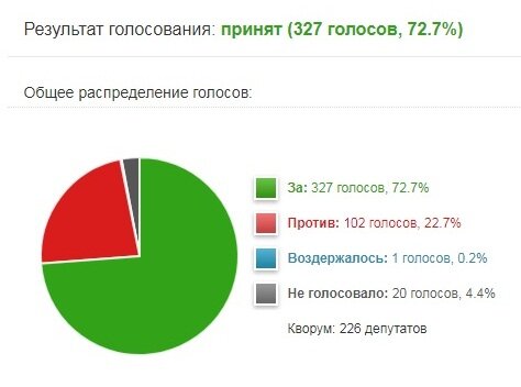 Итак, свершилось! Бравая «Единая Россия» сплоченно (329 из 378, не голосовало - 8) приняла проект антинародного федерального закона № 489161-7 "О внесении изменений в отдельные законодательные акты Российской Федерации по вопросам назначения и выплаты пенсий». Теперь мы можем уверенно жить, не надеясь дожить до пенсии. Малоимущие (не в смысле денег, а в смысле голосов) КПРФ, ЛДПР и «Справедливая Россия» проголосовали «против» (102 голоса), но от этого ничего не изменилось. Проект в первом чтении был принят. Поправки, которые предлагали думские комитеты областей и республик, были «Единой Россией» дружно отметены. К примеру, Законодательное Собрание Красноярского края предложило «провести широкое публичное обсуждение основных его положений, диалог с профсоюзами и другими объединениями работников, экспертным сообществом и научными организациями». Не прокатило. Собрание депутатов Ненецкого автономного округа предложило «учесть специфику регионов, расположенных в районах Крайнего Севера