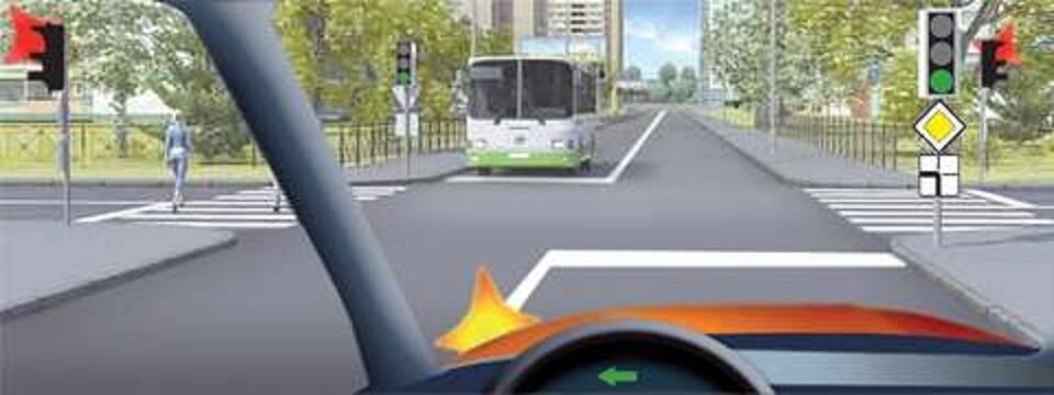 Билет 2 Вопрос 13. Вы намерены повернуть налево. Кому Вы должны уступить дорогу? 1. Только пешеходам. 2. Только автобусу. 3. Автобусу и пешеходам. Условия задачи: Водителю автотранспортного средства, от лица которого мы наблюдаем за окружением, стоит задача пересечь перекресток и повернуть налево. При этом перед нами потенциальные помехи: водитель автобуса, который, судя по отсутствующему сигналу поворота, движется во встречном направлении, и пешеходы, переходящие дорогу по "зебре". Перед нами светофор с разрешающим движение сигналом, а из дорожных знаков доступны лишь: знак 2.1 "Главная дорога" и 8.13 "Направление главное дороги". Направление нашего движение совпадает с направлением главной дороги. Решение: Проезд перекрестков регламентируется главой 13 ПДД. В силу наличия светофора перед нами регулируемый перекресток. На регулируемом перекрестке очередность движения определяется не знаками приоритета, а сигналами светофора (пп. 6.15 и 13.3 ПДД). Поворачивая налево, мы должны у