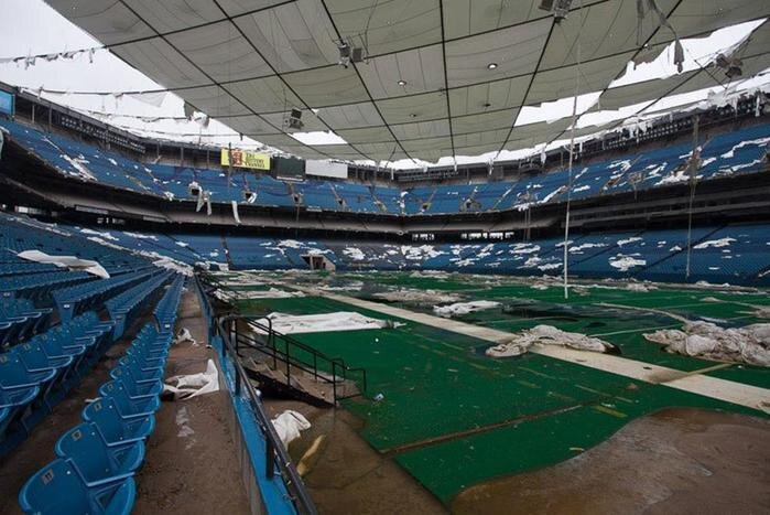 Спасибо за статью авторам "Заброшенного мира" Вконтакте. В городе Понтиак, который расположен рядом с Детройтом, в августе 1975 года произошло грандиозное открытие огромного стадиона, созданного по последнему слову техники того времени. В течении 20 лет, стадион регулярно собирал зрителей больше вместимости. На концертах популярных рок групп того времени билеты раскупали на 10 тыс больше, чем предусмотрено мест. Люди стояли в рядах и проходах, да где только возможно. На стадионе выступали такие известные группы, как «Ганз-н-роузес», «Пинк Флойд», а также, его выбирали под свои концерты легендарные Мадонна и Элвис Пресли. Но, в 90-х годах, как и Детройт со своими автомобильными заводами, Понтиак начал "затухать". У правительства не было средств на содержание стадиона и в конце концов его закрыли.