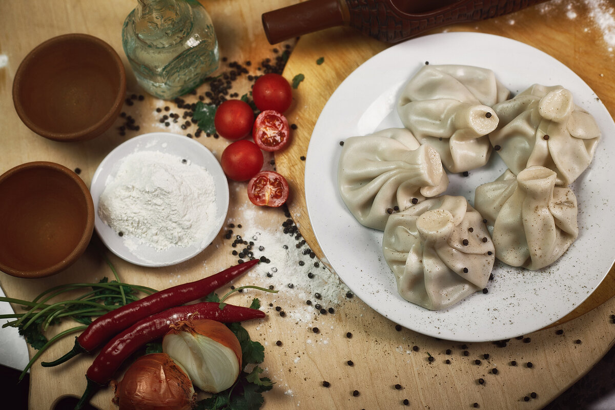 Хинкали — блюдо грузинской кухни. Говорят, что его придумала жена воина, который из-за ранения не мог жевать. Тогда жена мелко-мелко порубила мясо и слепила хинкали. Сочные, ароматные, очень вкусные! Чтобы приготовить настоящие хинкали, мясо желательно не прокручивать через мясорубку, а мелко рубить: рубленое мясо отдаст больше натурального сока при варке, а это самая ценная часть блюда. Кроме того, фарш не должен быть сухим, в него нужно добавить немного воды и тщательно размешать. Чем больше складок на хвостике, тем добротнее считаются хинкали: в идеале складок должно быть 19, но часто их бывает около 10. Есть хинкали нужно руками: взять за хвостик, перевернуть, прокусить маленькую дырочку и сначала выпить сок, а затем уже откусить. Ингредиенты: Фарш: Тесто: Приготовление: Тесто. В глубокую ёмкость высыпать муку, соль и начать замешивать, постепенно добавляя воду и подсолнечное масло. После того как масса станет однородной и эластичной, слепить её в комок, накрыть пищевой