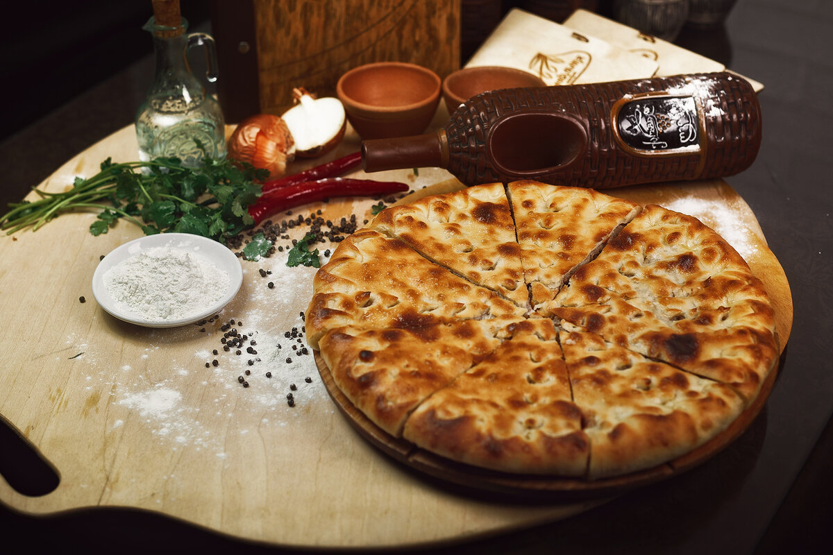 Плоские круглые лепешки-пироги выпекаются на дрожжевом тесте, которое тонко раскатывают и наполняют самой разнообразной начинкой: рубленым мясом (преимущественно говядиной и бараниной), традиционным осетинским сыром с зеленью, картофелем, фасолью, свеклой и так далее. Пирог запечатывают в центре, затем переворачивают швом вниз на противень и, аккуратно прижимая ладонью сверху, распределяют равномерно начинку по всей площади пирога. Перед подачей горячие пироги поливают растопленным сливочным маслом. Ингредиенты: Для теста: Для начинки: Приготовление: Приятного аппетита!