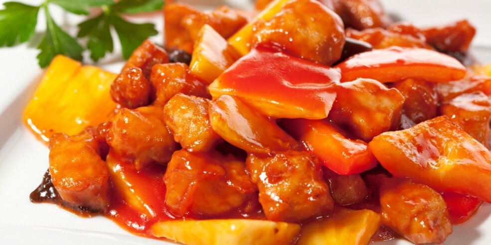 Берём 4 куриных грудки, споласкиваем, режем на тонкие брусочки и перекладываем на сковородку. Потом добавляем немного оливкового масла, солим, перчим, добавляем молотый кориандр по желанию и обжариваем минут 20. Тем временем достаём банку консервированных ананасов, сливаем лишний сок и режем их на небольшие треугольники, после чего добавляем к курочке. Так, тушим минут 15 – 20 и добавляем мёд по вкусу. Я беру липовый, так как он жидкий, его проще размешивать. Конечно, для любителей тёмной корочки больше подойдёт горчичный мёд, а с липовым она получается светло – золотистой. Далее оставляем курицу на огне до полного её приготовления, помешивая, чтобы не подгорела. Когда курица обжарится, добавим ещё немного мёда для вкуса и после 10 – 15 минут в