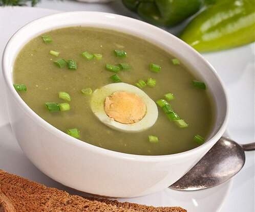 9. Сливки - 250 мл Инструкция приготовления 1. Отварите шпинат и измельчите в блендере. Воду, в которой варился шпинат, сохраните. 2. Измельчите лук и обжарьте на сливочном масле, добавив муку. 3. Соедините шпинатную воду с луком и пюре из шпината. Доведите до кипения и варите, пока суп не загустеет. Посолите, поперчите. Влейте сливки, постоянно помешивая. Разогрейте, но не кипятите. Снимите с огня. 4. Сварите вкрутую яйца, нарежьте ломтиками и добавьте в суп. 5. Нарежьте тонкими ломтиками бекон и обжарьте на сухой сковороде. Добавьте в суп.