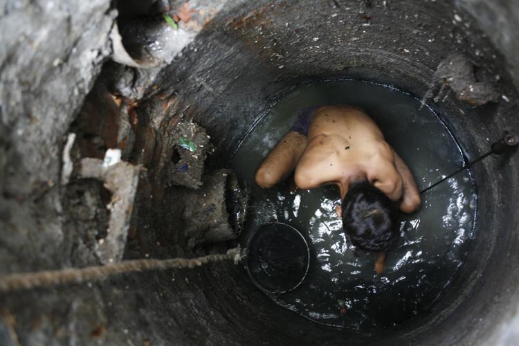 Ну что, как у тебя там дела в уютном офисе? Всё хорошо? Нет? А что случилось? Кондиционер не работает и тебе жарко? Ну ничего страшного... починят. Самая распространённая и часто встречаемая профессия в Индии - Дайвер сточных вод. Кто хоть раз был в Индии, то встречался с такими смелыми ребятами. Профессия заключается в том, чтобы нырять в канаву со сточными водами и помоями, дабы очистить стенки труб от большого мусора.