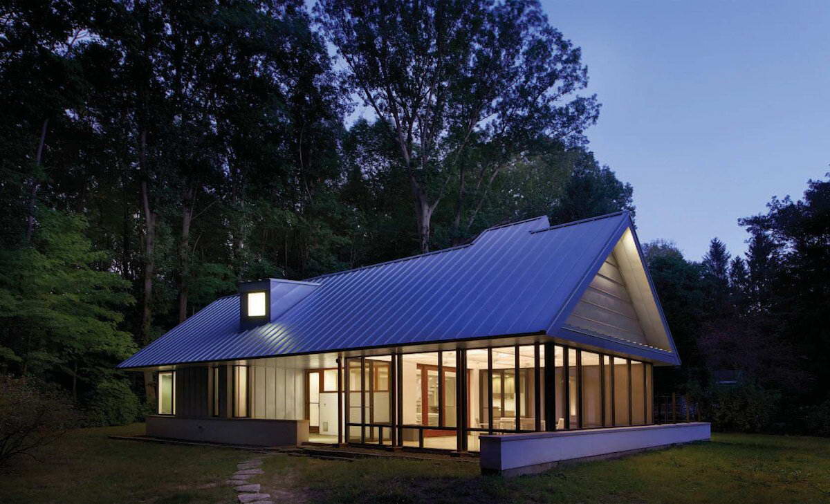 Этот дом, предназначенный для семейного загородного отдыха, построен в живописной лесной местности в штате Нью-Йорк. Владельцы не хотели типичного загородного дома, который часто представляет из себя обычный дом, построенный где-нибудь на природе. Ответом на их пожелания стала смелая и решительная архитектура пространства и формы.