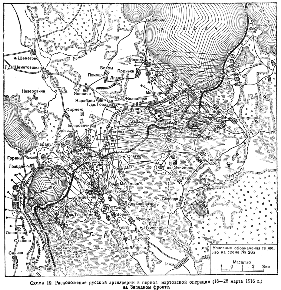Во время сражения на Верденском выступе союзники по Антанте в очередной раз обратились к командованию российской армии срочно предпринять наступление и оттянуть часть сил с Западного фронта. Наспех разработанный план предполагал нанесение двух главных ударов. Первый в направлении Поневежа силами 5-й армии Северного фронта и из района озера Нарочь в направлении Вилькомира силами 2-й армии Западного фронта. Кроме этого предполагалось нанести ряд вспомогательных ударов, в которых планировалось задействовать войска 1 -й и 10-й армий Западного фронта. Всего к предстоящей операции было привлечено до 600 тыс. человек. На направлениях главных и вспомогательных ударов российским войскам противостояли части 10-й германской армии общей численностью до 500 тыс. человек. 18 марта войска 2-й российской армии перешли в наступление. Наступая одновременно южнее и севернее озера Нарочь, они вклинились в оборону противника на глубину до 9 км и были остановлены. Это был самый большой успех, достигнутый