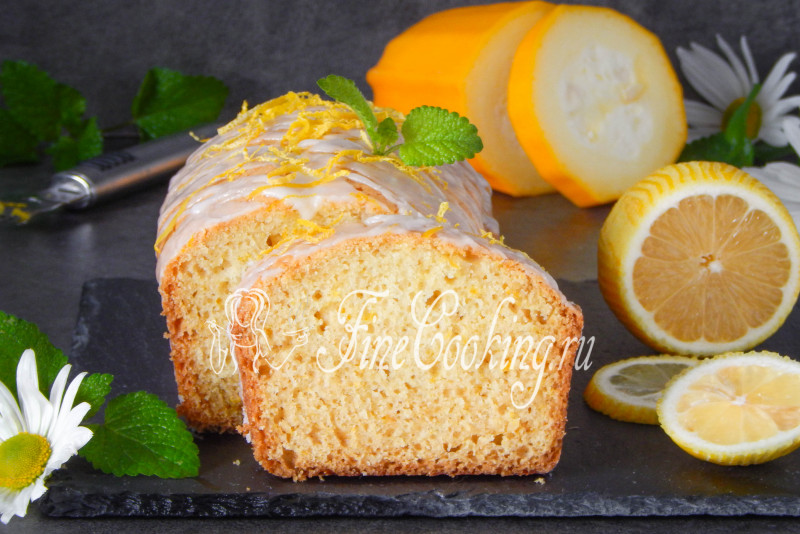 Остывший или чуть теплый кабачковый кекс перекладываем на разделочную доску и поливаем его лимонной глазурью