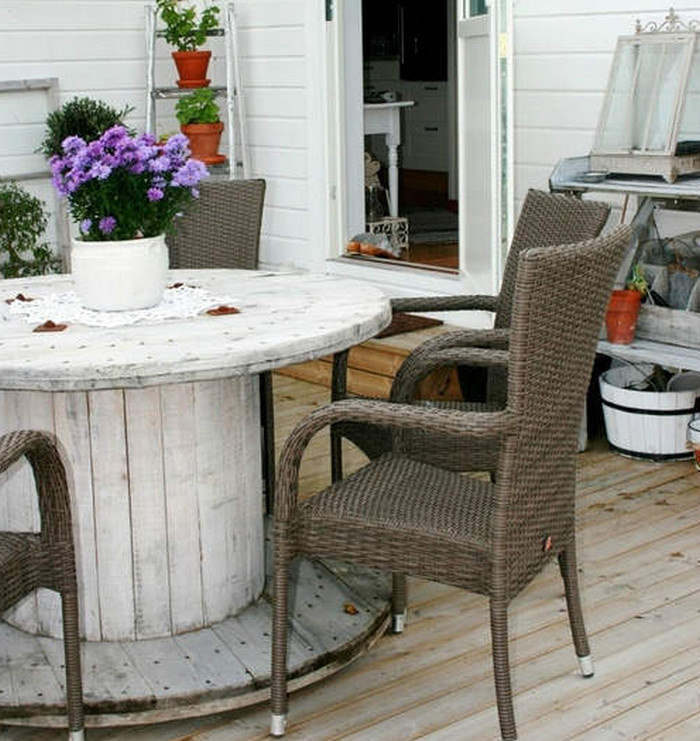 В коллекции бразильского музея «Big table» находится свыше 20 тысяч столов и столиков. Диаметр самого маленького – один микрон, самого большого – 382 метра. Интерьер своего дома тоже можно разнообразить уникальными столами, и покупать их вовсе не обязательно. В сущности, что такое стол? Платформа на основании. А значит, столом может быть что угодно. Наша подборка оригинальных идей – тому подтверждение. Для изготовления оригинального и характерного обеденного или журнального стола можно использовать такие материалы, как… 1. Кабельный барабан 2. Барабан обыкновенный 3. Виниловая пластинка 4. Журналы 5. Швейная машинка 6. Старая дверь 7. Ящики 8. Поддоны 9. Чугунная батарея 10. Пень