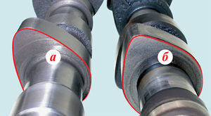 - Распределительные валы, в обиходе называемые “верховыми” и “низовыми”, смещают максимум крутящего момента соответственно в область повышенных и пониженных оборотов.