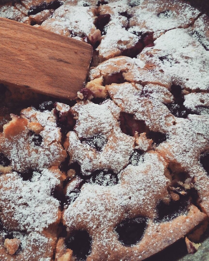 Духовку предварительно разогреть до 180 градусов. 1.Разъемную форму смазать сливочным маслом 2.Замороженную вишню разморозить 3.Взбить яйца с сахаром, продолжая взбивать, добавляем масло. 4.Просеять муку, перемешать ее с разрыхлителем и добавить. 5.Выложить в форму тесто, а сверху как можно больше вишни. 6.Выпекать 30-35 минут до готовности. Проверить, проткнув спичкой – она должна остаться сухой. Готовый пирог посыпать сахарной пудрой.