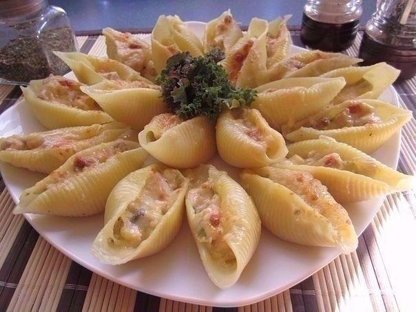 Ингредиенты: 1 кур.грудка 400 гр. шампиньонов 1 большая луковица 100 гр. твёрдого сыра 3 ст.л. сметаны Приготовление: Начинка: 1. тонкой соломкой режем курицу, лук, грибы. Лук спассировать на оливковом или растительном масле до прозрачности + мясо и через 4-5 мин + грибы + соль + перец. Обжаривать до испарения влаги с грибов, добавить сметану, тушить мин 5. Начинка готова. 2. Ракушки отварить, откинуть на дуршлаг и дать чуть остыть, чтобы в руки можно было взять. 3. Ложечкой берём начинку и фаршируем каждую ракушку, "укрывая" тёртым сыром. 4. Для зарумянивания начиненные ракушки ставим в духовку. Приятного аппетита! Понравилось - поставьте лайк! Подпишитесь на канал!