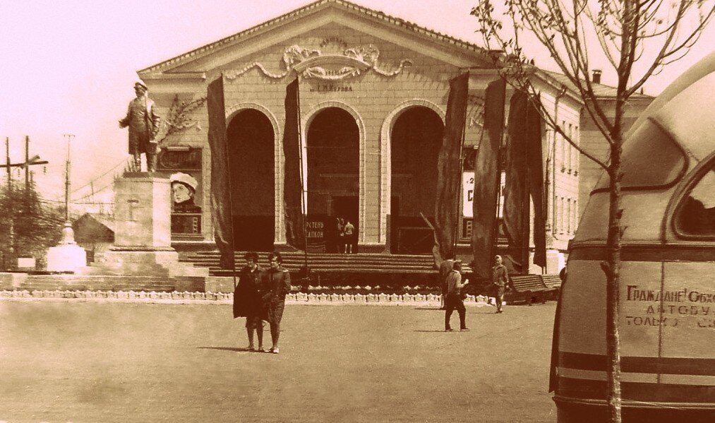 Кинотеатр был построен в 1955 году и имел вместимость 550 мест. В кинотеатр было 2 зала большой и малый ,также в кинотеатре был буфет где перед просмотром фильма можно было посидеть и перекусить,возле кинотеатра расположена площадь на которой проходили праздники такие как новый год и 9 мая. Люди охотно ходили в кинотеатр потому что не каждый мог себе позволить телевизор,а если и позволял то по нему нечего было смотреть,поэтому люди проводили свой досуг за просмотрам фильмов в кинотеатре.Кинотеатр продолжал свою работу до 1997 года после этого закрылся,потому что за модернизацию никто не хотел браться и людей стало ходить меньше а также это были трудные времена,у людей попросту не было денег потому что не платили деньги. После того как кинотеатр закрылся его отдали в аренду на 50 лет свидетелям иеговы,которые переделали кинотеатр под свои нужды.После того как в донбассе начался военный конфликт в нем располагался штаб ополчения. В 2016 году в нём открылся штаб гуманитарной пом