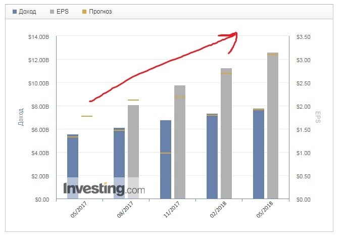 Доброго времени суток, это снова Открытый Инвестиционный Счет! Наконец то вышел свежий квартальный отчет Микрон. И он как и ожидалось был разрывным! Несмотря не на какие торговые войны США и Китая, несмотря на проверки китайских властей офисов компании по подозрению в монополизации повышении цен между основными участниками рынка -Samsung Electronics, SK Hynix и Micron Technology. https://www.ixbt.com/news/2018/06/05/samsung-sk-hynix-micron-dram.html. Мол, сели ребята и решили все вместе повысить цены на оперативную память в мире. На самом деле все просто. Спрос рождает предложение, спроса стало слишком много. Вот цены и растут. Ну а теперь к отчету компании: оход компании и Прибыль на акцию (EPS) выросли по сравнению даже с ожидаемым прогнозируемым ростом! Рост, рост и еще раз рост. Как всегда после отчетов бумагу может лихорадить какое то время. Кто то фиксирует прибыль, кто то перекладывается в другие активы не увидев скачка в моменте. Но Мы знаем что биржа это особое место, и