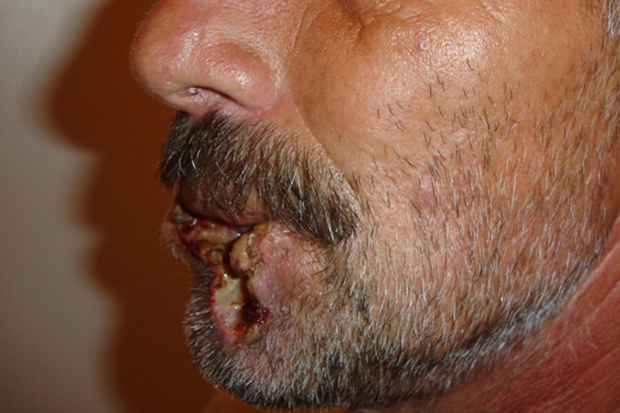 Дальше – хуже. Расстройство желудка, сильные головные боли и язвы на губах – это еще не самые страшные последствия насвая, фото, приведенное ниже, это хорошо демонстрирует.