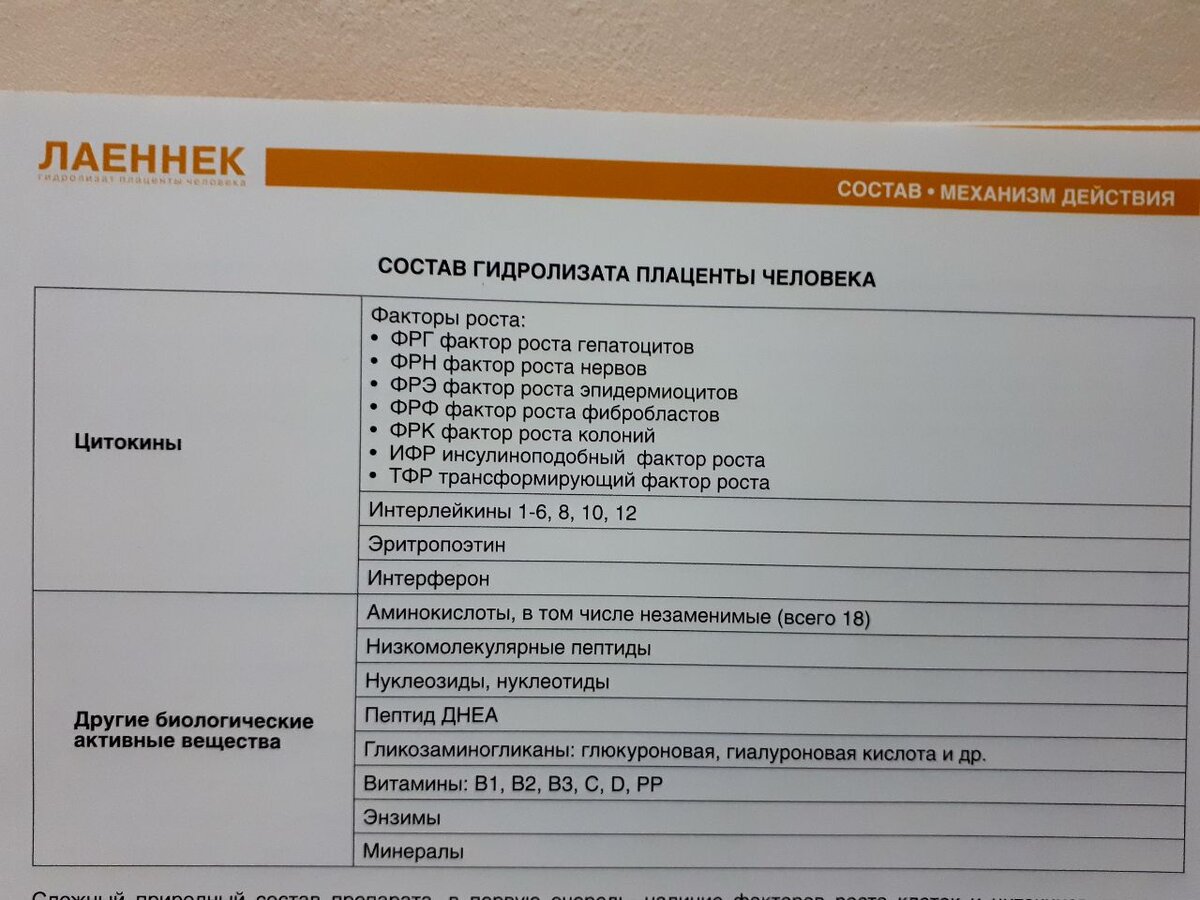 Лаенек японский плацентарный гепатопротектор, иммуномодулятор и геропротектор. Препарат Лаенек характерезуется сложным составом, в первую очередь, наличае факторов роста клеток и цитокинов. Что ограничивает использование препарата у онкологисеских больных. И повышает эффективность при лечении больных с поражением печени, нервной ткани, кожи. Уникальная технология получения гидролизата плаценты, применяемая JBP Co., Ltd., позволяет получить безопасный, стерильный, апирогенный, стандартный и стабильный препарат Лаенек. Широкий спектр клинических фармакологических эффектов препарата Лаенек обусловлен, в первую очередь, присутствием в его составе факторов роста клеток. Не вляясь питательными веществами, факторы роста активизируют метаболизм здоровых клеток: Инициируют синтез ДНК и вхождение клетки в процесс деления, стимулируют дифференциацию клетки, повышают её функциональную активность. В состав Лаенек входят интерлейкины и интерфероны, которые восстанавливают иммунную защиту рганизма:
