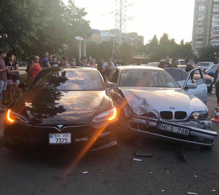 В Одессе 14-летний подросток на папином BMW врезался в Tesla.