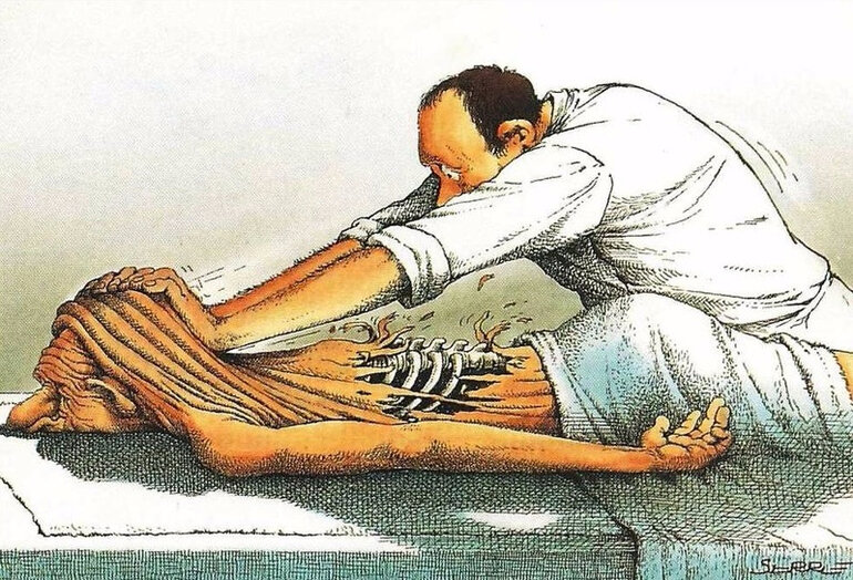 СПА по-египетски Холодная вода, мочалка одна на сто человек, скраб, который снимают с тела лопаточкой, укладывают в баночки и потом снова используют. Это отнюдь не все ужасы турецких и египетских хаммамов в Египте. Будьте бдительны, когда вы ложитесь на якобы горячие камни, они могут, например, током шандарахнуть, ибо что такое проводка, техника безопасности и вода с электричеством они тоже слабо себе представляют. Ещё будьте готовы когда вам делают скраб. Иногда так кожу сдирают, аж до крови, только успевай уворачиваться. И ещё, не советую в СПА заказывать услуги фотографа. Он фотографирует вас во время всего процесса, переодички заходит и делает серию снимков, потом вам записывает на диск. Слышала несколько историй, как девушки раньше времени подходили к ноутбуку фотографа, а там такие интим-фотки с разных ракурсов, которые он конечно же сделал себе на память. Массаж "Специалистов" массажных дел в салонах при отеле обучают прямо на месте в течение 3-5 дней. Потом массажист идет прак
