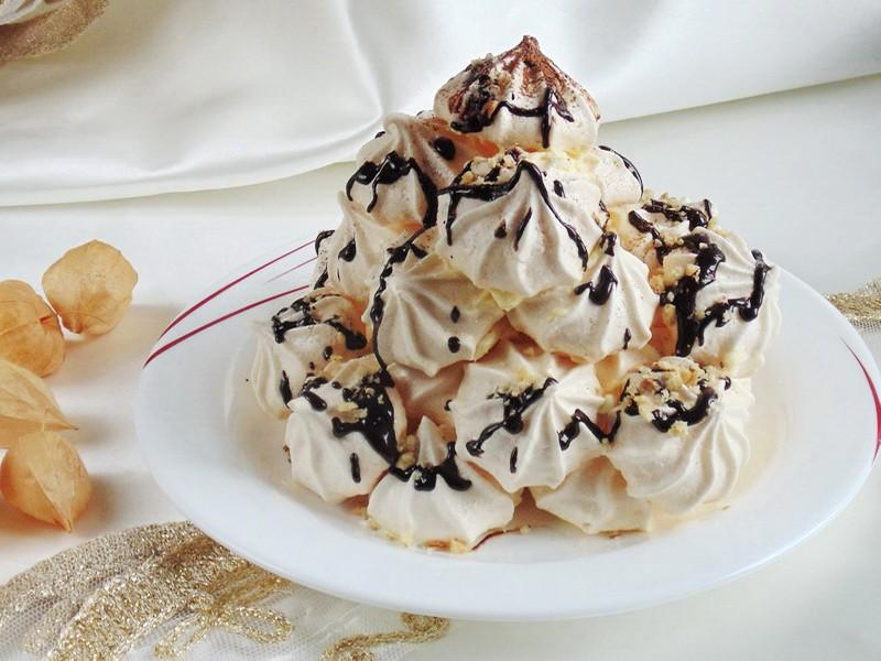 Ингредиенты Способ приготовления Берем ячные белки, щепотку соли и начинаем взбивать миксером. По мере взбивания вливаем лимонный сок и добавляем сахар. Белки взбиваем до густоты. Далее кондитерским мешком или ложкой выкладываем тесто на противень, застеленный пергаментной бумагой. Безе выпекаем в заранее разогретой до 100 градусов 1.5-2 часа. Для крема берем сливки и взбиваем. Затем добавляем вареную сгущенку и опять взбиваем, пака крем не загустеет. Затем дно безешек Обильно смазываем кремом и выкладываем на тарелку горкой. В самом конце украшаем торт растопленным шоколадом. Приятного аппетита! Подпишитесь на наш канал ВКУСНАЯ КУХНЯ, чтобы получать больше полезных советов и рецептов ;)