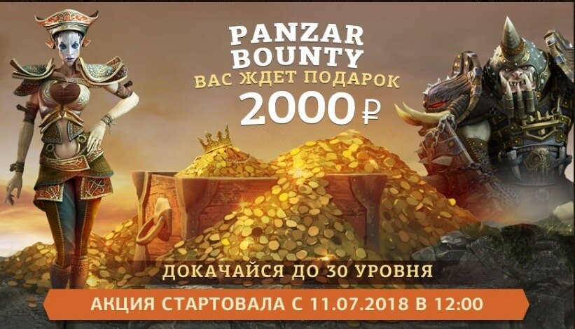 Комрады, я должен извинится, что проморгал такую акцию и увидел её только что! Халява он клиентской онлайн игры PANZAR - акция «Panzar Bounty» стартовала ещё 11 июня: каждый, кто прокачает персонажа до 30 уровня, получит 2000 рублей! Условия просты: создать новую учетную запись и развить персонажа до 30 уровня. В акции могут принять участие только учетные записи (аккаунты), созданные после начала акции «Panzar Bounty». Начало акции среда, 11.07.2018, с 12:00 по московскому времени. Вы получите приз за каждого прокачанного персонажа на учетной записи. Количество персонажей, которых вы можете прокачать на одной учетной записи неограниченно. То есть, берёте судьбу в свои руки и идёте ИГРАТЬ - больше от вас ничего не надо! Персонажи качаются довольно быстро, если вы хотя бы как-то знакомы с играми. Чтоб ускорить процесс прокачки, советую отказаться от обучения в начале игры и сразу начать рубить противников в пвп режиме! В среднем уходит 2 дня на персонажа (это если играть в свободное