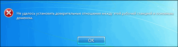 Нарушение доверительных отношений между рабочей станцией и контроллером домена. Решение очень простое. Компьютер выводится из домена в рабочую группу. Без перезагрузки, вводим компьютер в домен. Перезагружаем. Горячие клавиши WIN+R(пуск - выполнить, СМD) - SystemPropertiesComputerName