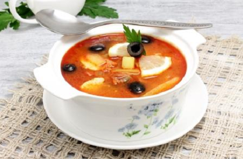 Очень простой в приготовлении и сытный суп. А горяченького хочется даже летом, так что иногда я себя балую этим вкусным супчиком. Попробуйте и вы, думаю, вам понравится) Ингредиенты: штук 5 сосисок грамм 300-400 свежего сырого мяса (говядина, свинина) примерно по 200 грамм вареной колбасы и ветчины среднего размера луковица штуки 3-4 соленых огурца баночка маслин без косточек пару ложек томатной пасты небольшой пучок петрушки соль, перец черный горошком и молотый, лаврушка для подачи - лимон, сметана. Кстати, о вкусной и здоровой еде еще можно прочитать здесь: Гнезда с мясом - быстрый ужин за 30 минут Язык с овощами в слоеном тесте - просто и вкусно Белорусские "Колдуны" или просто драники с мясом Пирог с сосисками - проще не бывает Быстрый ужин из сосисок Пицца на картофельной основе - просто кулинарный шедевр Идеальный завтрак - ленивые хачапури Приготовление: 1. С мяса сварить бульон с добавлением соли, перца горошком и лаврушки. Мясо достать и немного остудить. 2. Поджари
