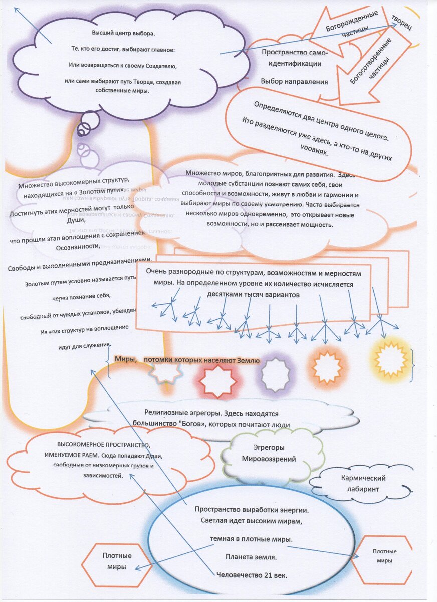 Какие-то частицы разделяются уже на этом уровне, какие-то на других, в любом случае продолжается движение по пути развития. И пока еще неопытные частицы, наполненные энергией Творца, попадают в миры благоприятные для развития. Это большое количество миров, подобных детскому саду. Эти миры наполнены Гармонией, Любовью, Благополучием, молодые частицы приобретают в них первые Духовные структуры, познают сами себя, свои возможности. Здесь они выбирают миры, через которые будет проходить их путь развития и реализации своего выбранного предназначения. На каждом этапе выбор предназначения будет происходить снова и снова, но это всего будут лишь шаги для реализации главного пути, выбранного частицей после своего появления на Свет.