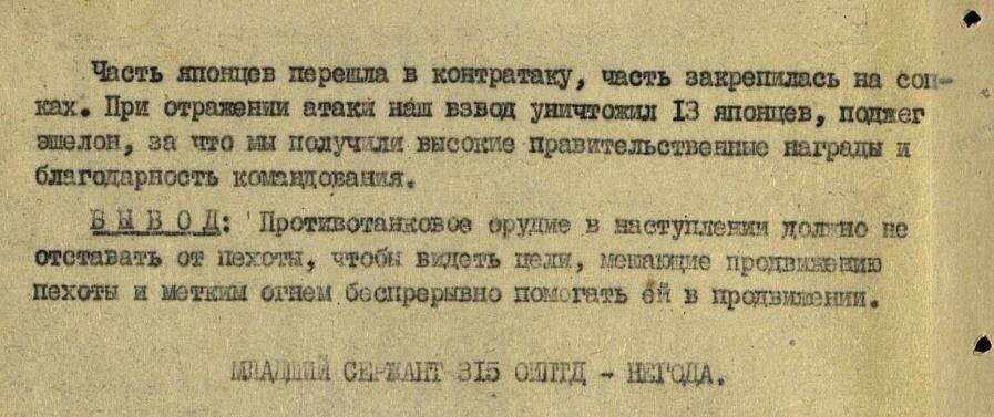 В октябре месяце 1944 г. мы прибыли на пополнение в одно из соединений действующей Красной Армии. В то время мы боевого опыта не имели, т.к. только что призваны в армию. Мы попали в один боевой расчет командира орудия старшины Муллахметова и 6 октября я вместе с подразделением пошел в наступление. Во время прорыва обороны наше орудие поддерживало пехотное подразделение. Метким огнем орудия мы уничтожили четыре вражеских пулемета. Мы прилагали все усилия, чтобы не отставать от пехоты. Тогда я был заряжающим, а младший сержант Степанович замковым. Мы все работали слажено, четко выполняя команды и приказания командира орудия, хотя и были еще слабо обучены. Особенно трудно было при форсировании реки Неман, в районе г. Юрбург, где мы были приданы для усиления одному стрелковому подразделению и оказали значительную помощь воинам – пехотинцам, уничтожив немецкую повозку с боеприпасами и два пулемета. Зимой 1945 г. я был участником прорыва вражеской обороны в районе д. Крузино. Прорвав успеш