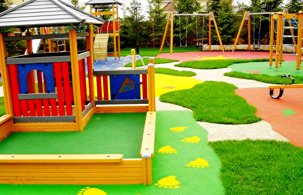 Самым популярным покрытием детской зоны за городом является щебенка либо крупный песок. Только стоит иметь в виду, что горный песок не подходит для этих зон. Отдать предпочтение лучше речному.