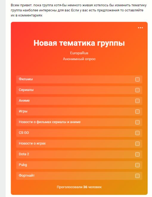 В группе проводится голосование не забудьте проголосовать пожалуйста EuropaRus