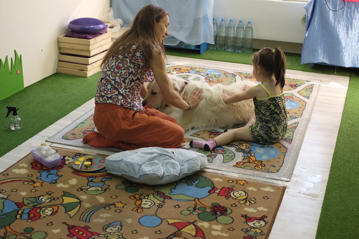 Привет! Меня зовут Елена Смотрова. Я работаю логопедом, Альбус - моя собака-терапевт. Мы проводим занятия по канистерапии. КАНИСТЕРАПИЯ - это занятия, на которых специально обученная собака помогает детям преодолевать трудности в общении с людьми и животными, осваивать двигательные навыки, учит говорить, играть, управлять своими эмоциями и поведением. К нам обратились родители ребенка с просьбой продолжить логопедические занятия в летнее время.