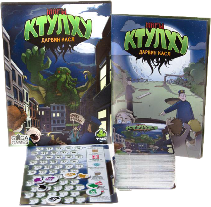 Атмосфера произведений Лавкрафта всегда привлекала создателей настольных игр и Дарвин Касл не стал исключением, игра Миры Ктулху стала жутким перевоплощением колодостроительной игры Star realms, изменения в основном поверхностные и коснулись механики игры и оформления карт, неудобные колонки текста были заменены на удобные иконки той или иной особенности карты. Также теперь нас порадуют красочными иллюстрациями ка