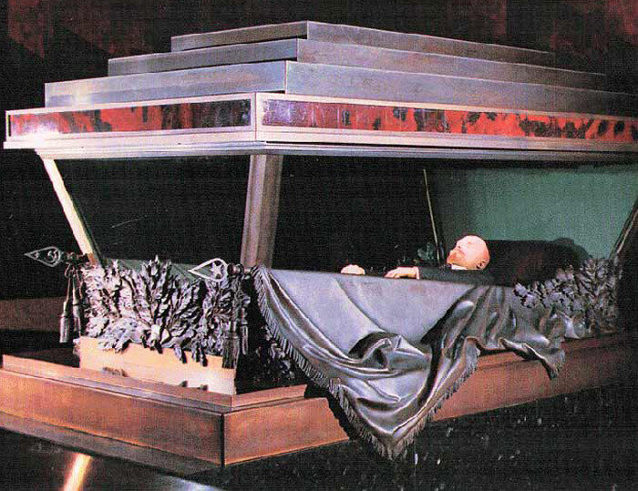 Все вы прекрасно знаете, что после смерти Ленина было принято решение сохранить его тело в видел нетленных мощей, чтобы трудящиеся всего могли в любой момент поклониться любимому вождю. Для наших людей подобный способ поклонения показался, мягко говоря, странным, хотя все быстро привыкли, но достаточно зайти практически в любой крупный собор в Италии, чтобы увидеть тела Святых, выставленных на всеобщее обозрение в стеклянном гробу. Такие образом, компартия взяла на вооружение широко распространенную католическую практику поклонения святым. Итак, Ленин нашел последний покой в мавзолее на Красной площади: Но мало кто знает, что поляки после смерти одного из главных противников Ленина отца нации маршала Пилсудского попытались сохранить его тело таким же образов, правда, в соборе на Вавеле, рядом с польскими королями: Но, довольно быстро что-то пошло не так, сперва стеклянный саркофаг заменили на гроб с окошечками: А потом и вовсе закрытый. В СССР над сохранением мумии Ленина работал целы