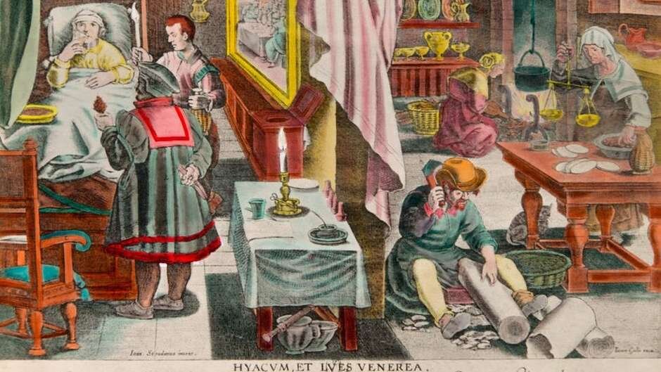 Сегодня хочу рассказать любопытные факты, связанные с жуткой болезнью – сифилисом. Несмотря на то, что человечество научилось успешно лечить этот недуг, последствия запущенных форм устрашают. В 1495 года французский король Карл VIII вторгся в Неаполь, требуя права на это королевство. Но войска заразились невиданной доселе болезнью. Врачи того времени не нашли описания этой болезни в книгах. Уровень паники был примерно такой же, как и со СПИДОМ в 20-м веке. В 1509 году, молодой немецкий солдат Ульрих фон Хуттен подцепил неизвестную болезнь, во время командировки в Италии. Он описал свое состояние следующим образом: «(все время) выскакивали гноящиеся фурункулы, похожие по размеру и внешнему виду на желудь, источающие неприятный запах. Ощущение жжения было как от прикосновения к огню». Эта болезнь передавалась через половой контакт. Незадолго до этого, в 1490-х годах, европейское население только что оправилось от бубонной чумы, известной как Черная смерть. Каждый третий житель