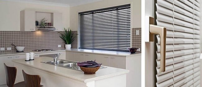 При выборе горизонтальных жалюзи нужно прежде всего обратить внимание на материал, использованный для изготовления ламелей. Алюминиевые больше всего подойдут для офисов, магазинов и баров, то есть общественных мест. Дело в том, что выглядят они несколько «холодновато». Однако часто их используют и в жилых помещениях. Неплохо будут смотреться такие жалюзи в сочетании с легкими тюлями или даже обычными портьерами. Основным преимуществом алюминиевых ламелей можно назвать простоту ухода. Металл при изготовлении покрывают специальным пластиковым напылением, которое хорошо моется.