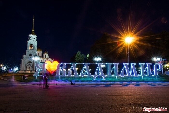 - Надпись: «Я люблю Владимир» на Соборной площади