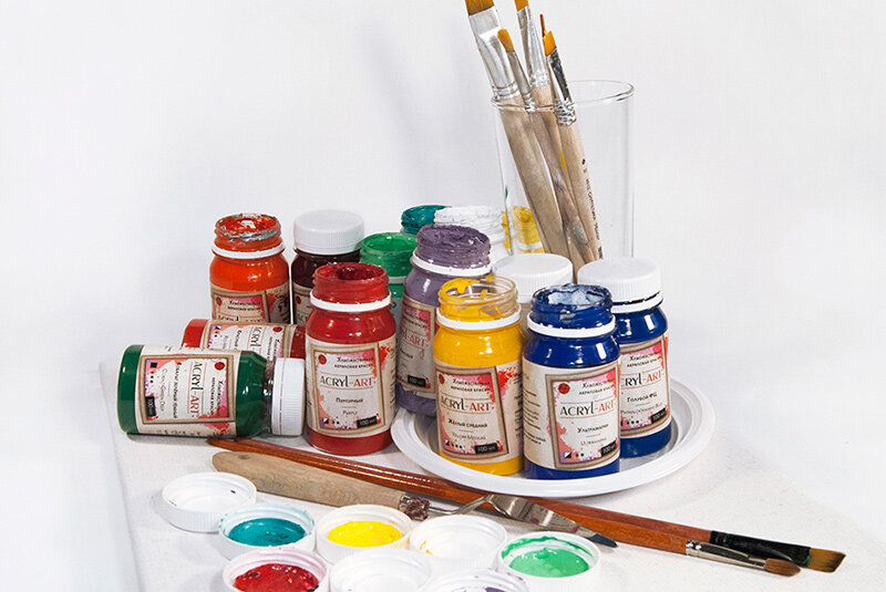 Живопись акрилом — это очень увлекательно, а возможность украсить интерьер своего дома послужит приятным бонусом. Даже если вы новичок в творческом мире и никогда не держали в руках кисть, с помощью этого пошагового мастер-класса вы легко создадите яркий натюрморт своими руками. Для создания простого натюрморта для начинающих нам понадобятся: • Загрунтованный холст размером 30 на 40. • Краски акриловые «Акрил Арт»: Желтый средний, Лимонный, Пурпурный, Красный средний, Лиловый, Красно-фиолетовый, Кобальт холодный светлый, Кобальт холодный темный, Ультрамарин, Голубой ФЦ, Белила титановые. • Из инструментов: мастихин, синтетические кисти, пластиковая одноразовая тарелка (послужит палитрой) и простой карандаш. Шаг 1. Эскиз